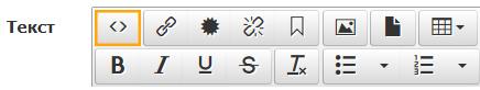 В контекстном меню поля «Текст» кликнуть на иконку «Исходный код».