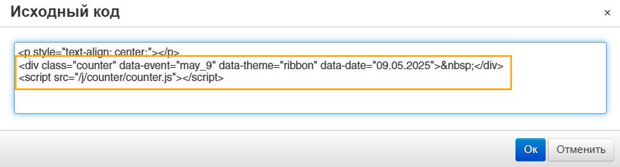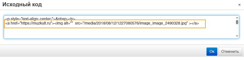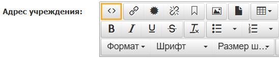 Открыть для редактирования поле «Адрес учреждения». В контекстном меню кликнуть на иконку «Исходный код».