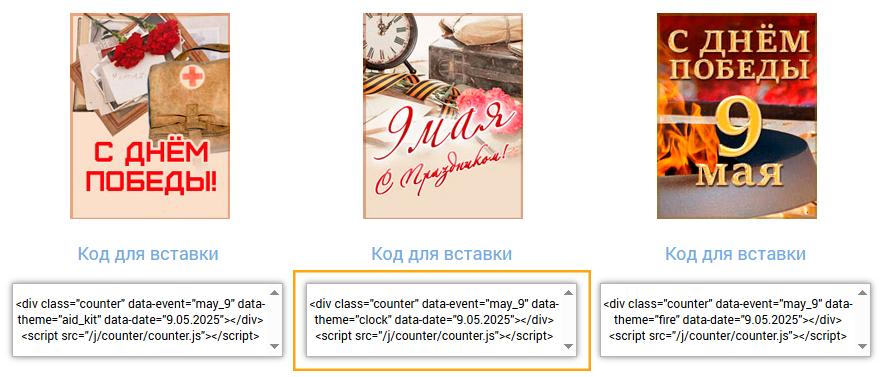 Клипарты, счетчики, открытки доступны в разделе «Графические материалы» по ссылкам: