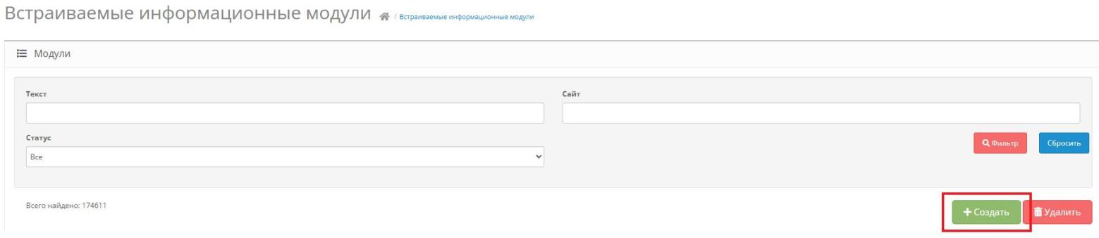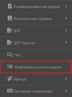 Из раскрывающегося меню слева выбрать пункт «Информационные модули».