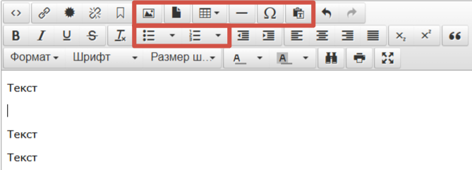 Установить курсор в место текста, куда нужно вставить элемент → нажать на кнопку вставки элемента.