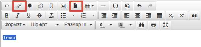 Для загрузки документа с компьютера: выделить текст → нажать на кнопку «Вставить/отредактировать ссылку на файл».