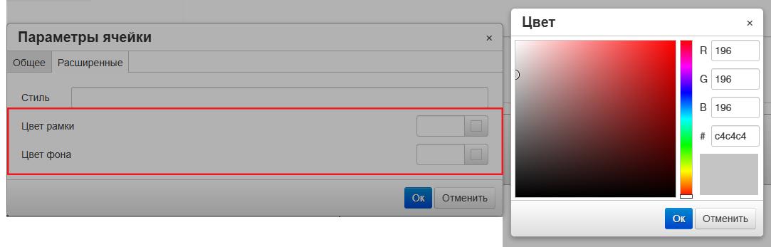 Вкладка «Расширенные» позволяет задать цвет фона ячейки и цвет ее границы. Сохранить изменения.