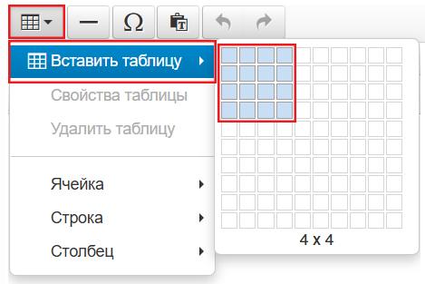 В поле редактирования появится таблица с указанным количеством строк и столбцов.
