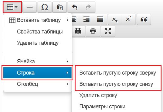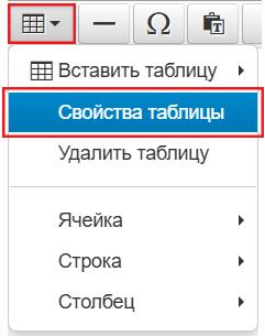 Выбрав пункт выпадающего меню «Строка»/«Столбец», можно удалить строку/столбец или удалить всю таблицу. Пункт выпадающего меню «Параметры строки/столбца» позволяет задать уникальные параметры для указанной строки/столбца.