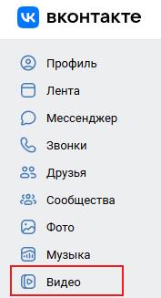 Загрузить видеофайл на видеохостинг ВКонтакте, для этого откройте в профиле ВКонтакте раздел «Видео».